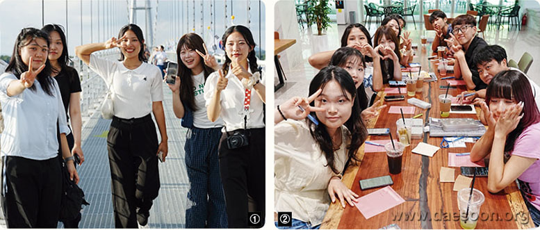 오오모토와의 교류에 참여하게 되었을 때, 큰 기대는 없었고 한편으론 조금 걱정도 됐다. 일본인 친구를 사귀고 싶다는 생각을 해본 적도 없었다. 솔직히 말하면 나는 주변 사람들과 매체를 통해 일본인이 개인주의적이고 소극적이라는 이야기를 들었기에 나도 모르게 편견을 갖고 있었던 것 같다. 그래서 오히려 더 마음을 열고 다가가야겠다고 생각했다. 이번 상생스테이에서 일본 학생들이 좋은 추억을 가져가도록 따뜻하게 대해주자고 다짐했다. 대순학생회의 일원으로서, 대순종학과 학생으로서 이 자리에 함께할 수 있는 것에 감사한 마음이 있었기에 마음을 다해 임하고 싶었다. 그런데 막상 상생스테이가 시작되자, 내 생각은 단번에 뒤집혔다. 오오모토 학생들은 모두 밝고 호의적이었다. 먼저 다가와 환하게 인사해 주고 내가 말을 걸면 웃으며 화답해 주었다. 첫날 저녁엔 함께 편의점에 가서 우리가 추천한 음식을 사 먹으며 수다를 떨었는데, 낯선 음식일 텐데도 맛있게 먹어주었다. 내가 늘 아무렇지 않게 먹던 음식이 그들의 입에서 맛있다는 반응으로 돌아오니 새삼 특별하게 느껴졌다. 그렇게 우리는 나라는 달랐지만, 금세 마음이 통해 가까워질 수 있었다. 첫 활동으로 자기소개를 했다. 일본 학생들은 한국어로, 우리는 일본어로 자기소개를 준비했다. 서툴고 어설펐지만, 상대의 언어로 소개하려는 그 순간 자체가 이미 상생이었다. 그리고 저녁에는 오오모토 학생들이 일본에서 가져온 선물을 받았다. 나 혼자 마음을 주겠다고 다짐한 줄 알았는데, 그들도 같은 마음으로 준비해 온 것이었다. 그 사실이 너무 따뜻하게 다가왔다. 결국 상생은 거창한 게 아니라, 서로를 위해 마음을 내는 것임을 다시 느꼈다. 야외 활동 때는 출렁다리에 갔는데 맑은 하늘과 선선한 바람이 마치 우리 활동에 날씨 부조를 받은 것 같았다. 또 한복을 입고 도장을 참배하고 기도까지 모셨는데, 일본 학생들은 처음이라 낯설고 어려웠을 텐데도 경건하게 임해주었다. 특히 기도 모시러 가는 길에 태을주와 기도주 발음을 물어보며 연습하는 모습이 참 인상 깊었다. 우리도 함께 발음을 맞춰주며 도왔고, 결국 참배와 기도가 모두 의미 있게 끝날 수 있었다. 서로 존중하는 마음이 있었기에 가능했다고 생각한다.