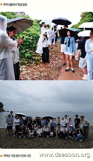 “가장 인상 깊었던 건 바위에 동그랗게 뚫린 ‘돌개구멍(구혈)’이었다. 적벽강 돌개구멍을 직접 조사하고 발표하면서 이 구멍이 오랜 시간 동안 물의 회오리가 작은 돌을 회전시켜 암반을 깎아내 형성되었다는 것을 알게 되었다. 이를 통해 자연의 힘과 시간이 얼마나 놀라운 결과를 만들어낼 수 있는지 느낄 수 있었다.” (2학년 나○빈)