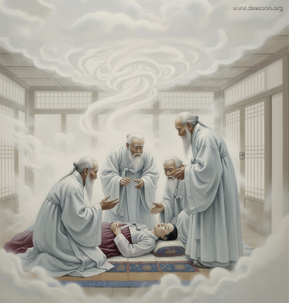 그날 밤 꿈을 꾸었는데, 너무 생생하여 그게 꿈인지 생시인지 지금도 잘 모르겠습니다. 조상님들로 여겨지는 많은 분이 누워있는 제 머리맡에 동그랗게 둘러앉아 상의하는 듯 대화를 하고 있었습니다.