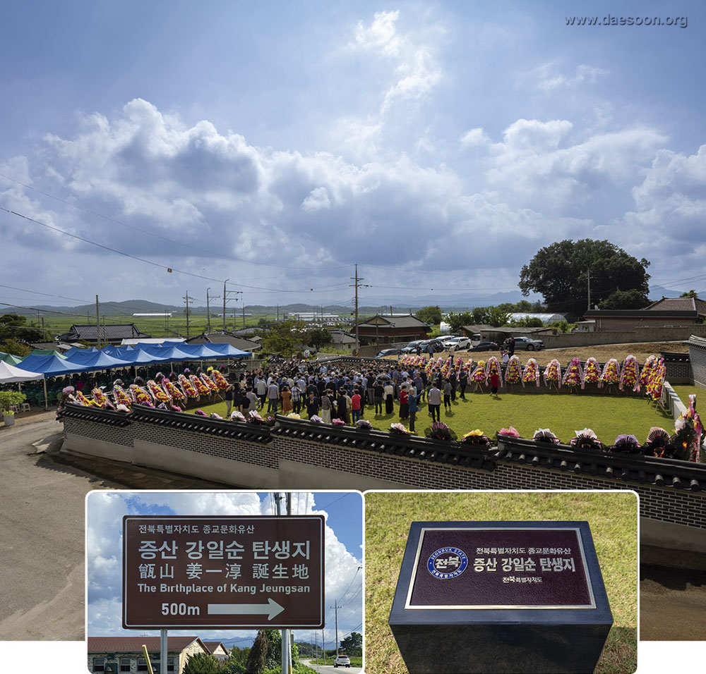 8월 21일 증산 강일순 성사 탄생지 전북특별자치도 종교문화유산 지정을 기념하는 동판 제막식이 구천상제님 탄강지(전북 정읍시 덕천면 신송길 64 소재)에서 개최됐다.