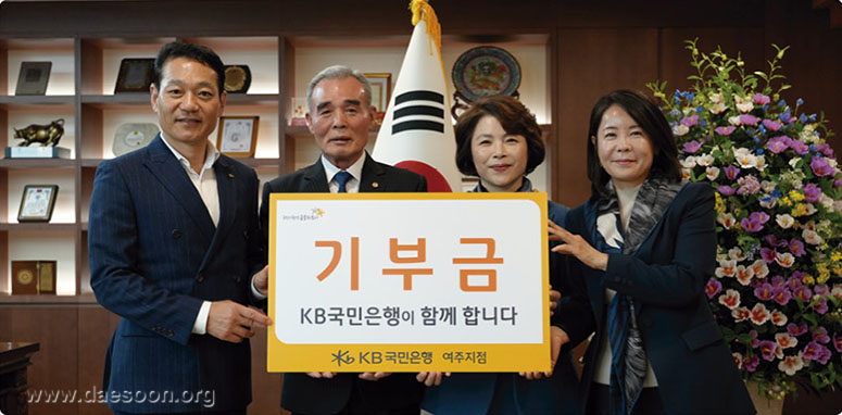 11월 7일 KB국민은행에서 김진삼 부행장과 경기지역본부장, 여주지점장이 종단을 방문해 1억 원을 전달했다. 이날 화기애애한 분위기 속에서 간담회와 기부식을 진행했다.