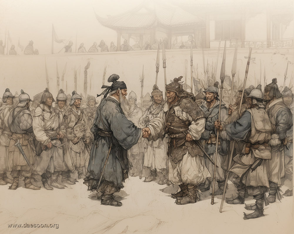 성안군이 광무군의 전략대로 했더라면 한나라와의 전쟁에서 손쉽게 승리할 수 있었을 것이다. 한신은 광무군의 전략이 채택될까 봐 두려워했다. 그러나 성안군은 신념에 따라 정면 승부만을 의로움으로 여겼고, 광무군의 간절한 요청을 무시한 채 정공법을 택했다. 그 결과 그는 전쟁에서 처절한 패배를 맛보았고, 결국 자신의 독단적인 판단을 후회하며 통한의 눈물을 흘렸을 것이다. 원리 원칙도 중요하지만, 전쟁과 같은 절체절명의 상황에선 확실한 승부를 낼 수 있는 유연한 전략도 받아들일 수 있었어야만 했다. 광무군 또한 자신의 전략이 수용될 수 있도록 적극적으로 설득하지 못한 점에 대해 비통해했을 것이다. 동시에 아무리 현명한 의견이라 해도 상대가 받아들이지 않으면 무의미해질 수 있는 현실을 깨달았을 것이다. 그러하기에 광무군은 한신의 요청을 수락하며 자신의 계책을 전하기 전, “智者千慮 必有一失, 愚者千慮 必有一得”이라고 말하며 자신의 말이 가볍게 여겨지지 않기를 간절히 바랐다. 성안군의 사례는 실권자가 아래 사람의 의견은 무시한 채 자신의 판단만을 고집하면, 전쟁에서 패배처럼 너무도 크나큰 대가를 치를 수도 있음을 보여준다. 이는 전시뿐 아니라 평시에도 유효하다. 나라나 조직, 기업의 실권자뿐 아니라 요직에 있는 사람은 자신이 속한 단체의 이익과 발전을 위해선 항상 자기 생각이 옳을 수는 없음을 인식하여, 실무를 담당하는 구성원의 다양한 의견과 조언을 존중하여 경청해야 한다. 실무진의 경험과 통찰이 모일 때 비로소 단체는 안정과 성장, 발전을 도모할 수 있다. 도전님께서는 도인들은 상제님과 천지신명이 베풀어 주신 기운을 모두가 다 같이 받고 있기 때문에 수반들의 의사가 마땅히 존중돼야 한다고 말씀하셨다. 더불어 천기자동으로 아무것도 모르는 사람도 신명의 도움으로 답을 찾을 수 있기에 모든 일을 임원 혼자의 의사로써 결정할 것이 아니고 여러 사람에게 의사를 물어야 한다고 말씀하셨다.01 또한 깨진 그릇을 전부 모아 붙여야만 비로소 완전한 그릇의 역할을 할 수 있듯이 도인의 각기 다양한 의견들을 모두 모았을 때 우리의 일은 이루어진다고 다음과 같이 말씀하셨다.