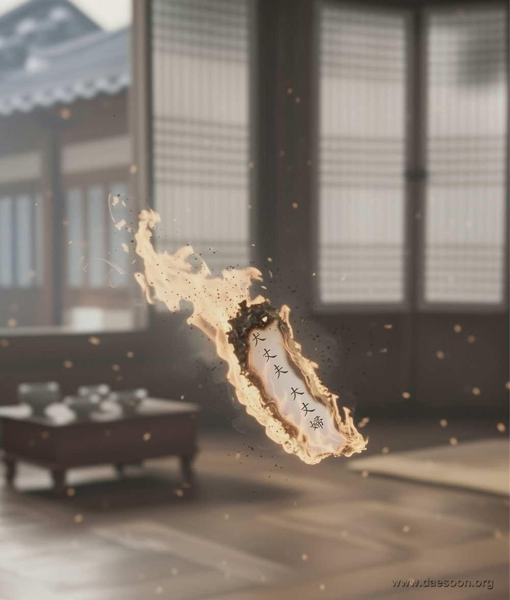 『전경』에는 상제님께서 종이에 글을 써서 불사르셨다는 내용이 50여 회 나올 정도로 자주 등장한다. 공사 1장 5절에는 상제님께서 명부공사를 말씀하신 후 날마다 종이에 글을 쓰시고 그것을 불사르셨다고 기록되어 있다.01 상제님과 도주님의 일대기를 다룬 영화 <화평의 길>에도 대장부(大丈婦) 공사를 보시는 상제님께서 종이를 불사르시는 장면이 등장한다. 종도들이 앉아 있는 앞에서 “대장부(大丈夫) 대장부(大丈婦)”라고 쓰시고, 그 종이를 불사르시는 모습은 상제님의 공사에 신비함을 더해주는 인상적인 장면이다. 종이에 글을 써서 불사르신 행위는 주로 천지공사와 관련되기에 각 공사에 해당하는 의미가 있을 것이다. 이 글에서는 전통적으로 종이를 태우는 행위가 지닌 종교 문화적 의미를 알아보고, 상제님께서 종이에 글을 쓰신 후 불사르신 행위가 지닌 의미에 관해서 간략하게 짚어보고자 한다.