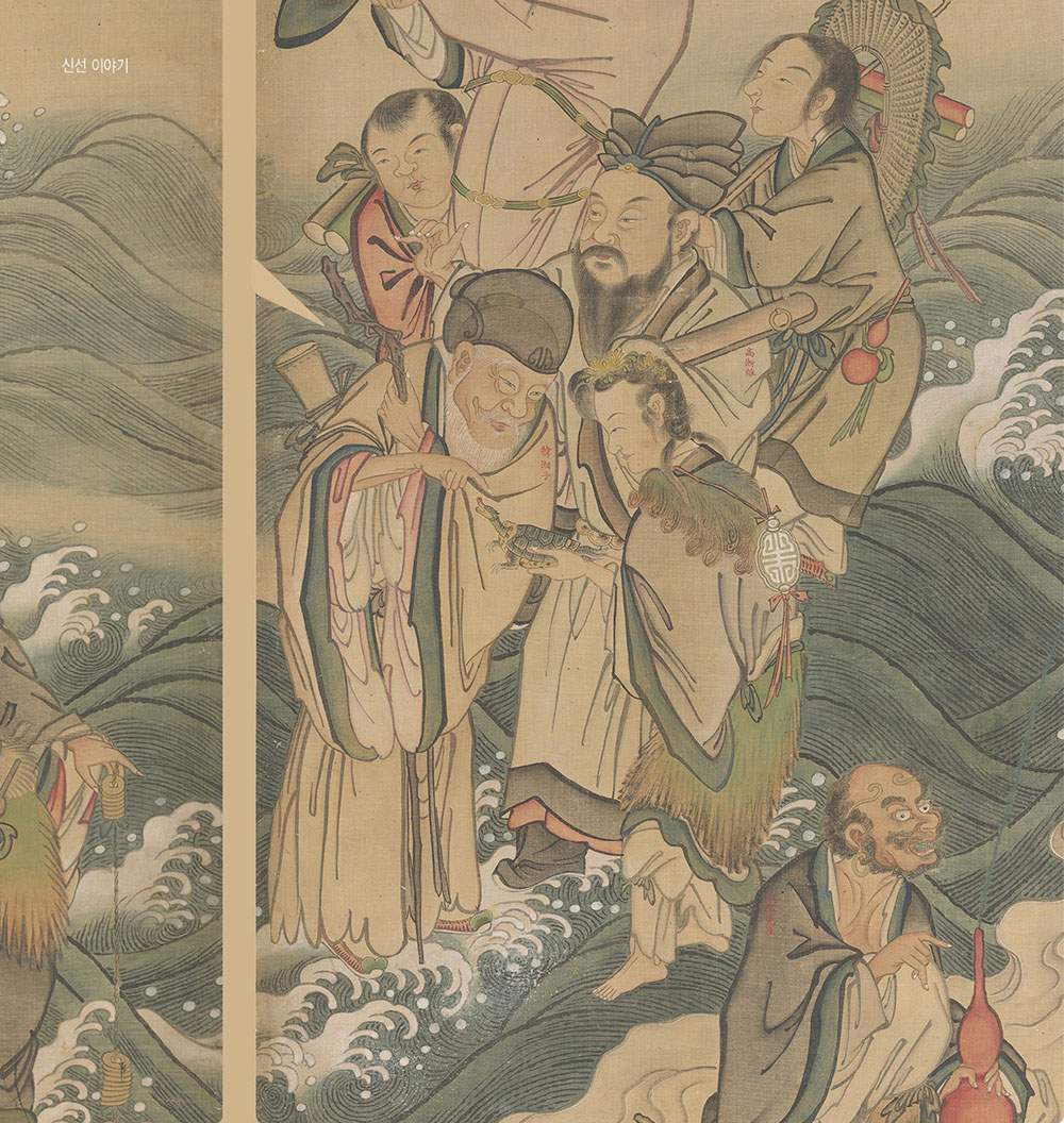 ▲ 신선 한상자, 「김홍도 필 파상군선도」 8폭 병풍 중 7폭 부분, 국립중앙박물관